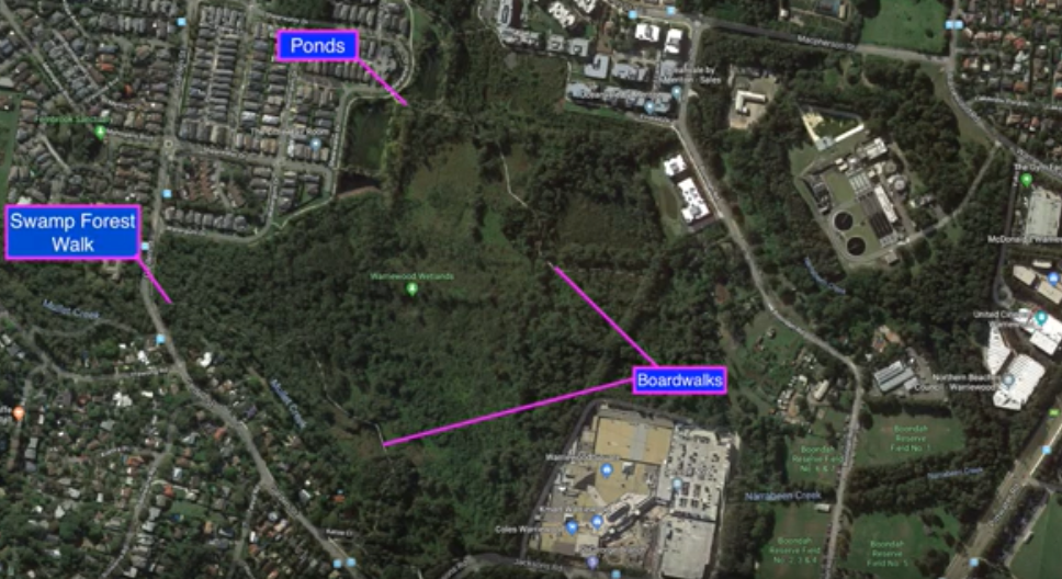 The Warriewood Wetlands are swamps on the flat lands between the Warriewood beach and the Ingleside/ Elanora Heights, about 45 minutes drive north of Sydney. There is a large number of bird species recorded at the Warriewood Wetlands.